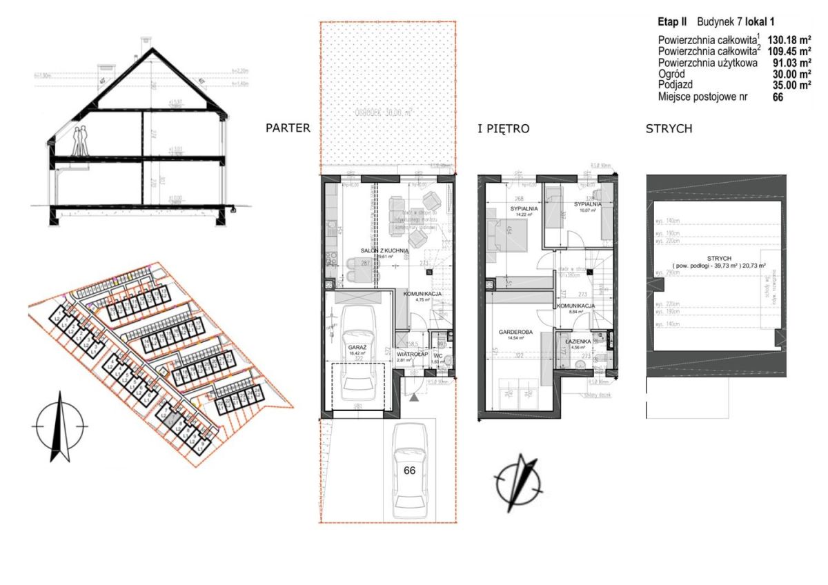 - Miejsce na 3 samochody dla każdego mieszkania z garażem (miejsce postojowe zewnętrzne, garaż i podjazd do garażu),