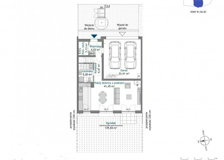 - 2-wu stanowiskowy garaż o powierzchni 33,31 m2.