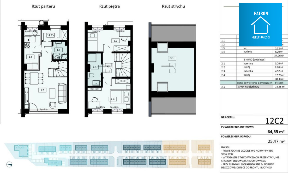 - zaprojektowano dwa przestronne pokoje, dużą łazienkę, korytarz oraz strych nieużytkowy, który można zagospodarować (14,46 m2) .