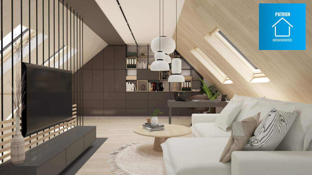 - obszerne i docieplone loftowe poddasze (26 m2),gdzie prowadzą szerokie, widne schody ( można zamknąć dodatkowymi drzwiami)