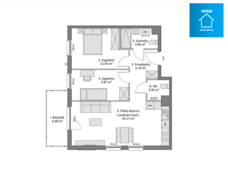 Patron Nieruchomości ma przyjemność zaprezentować Państwu 3 pokojowe mieszkanie z balkonem w stanie deweloperskim, strona świata pd-zach.