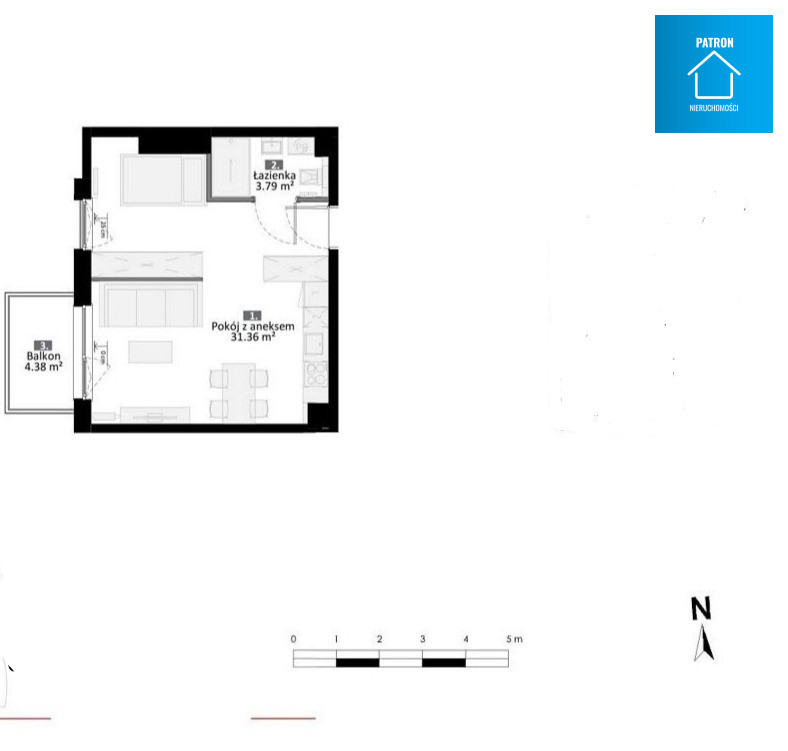 - pokój z aneksem o pow. 31,36 m2 ( możliwość zrobienia 2 pokoi)