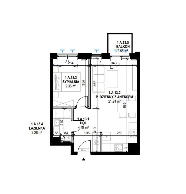 -pokój dzienny z aneksem kuchennym 21,91 m²
