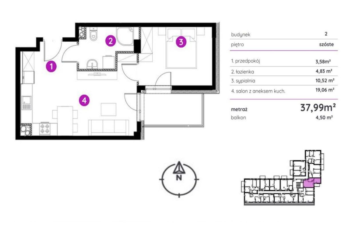 Oferowane 2- pokojowe mieszkanie o powierzchni 37.99 m2, posiada ekspozycję południowo- wschodnią i usytuowane jest na 6-tym piętrze.