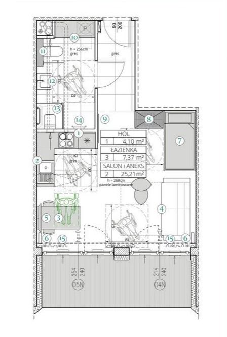 - pokoju z aneksem kuchennym o pow. 25,21m2