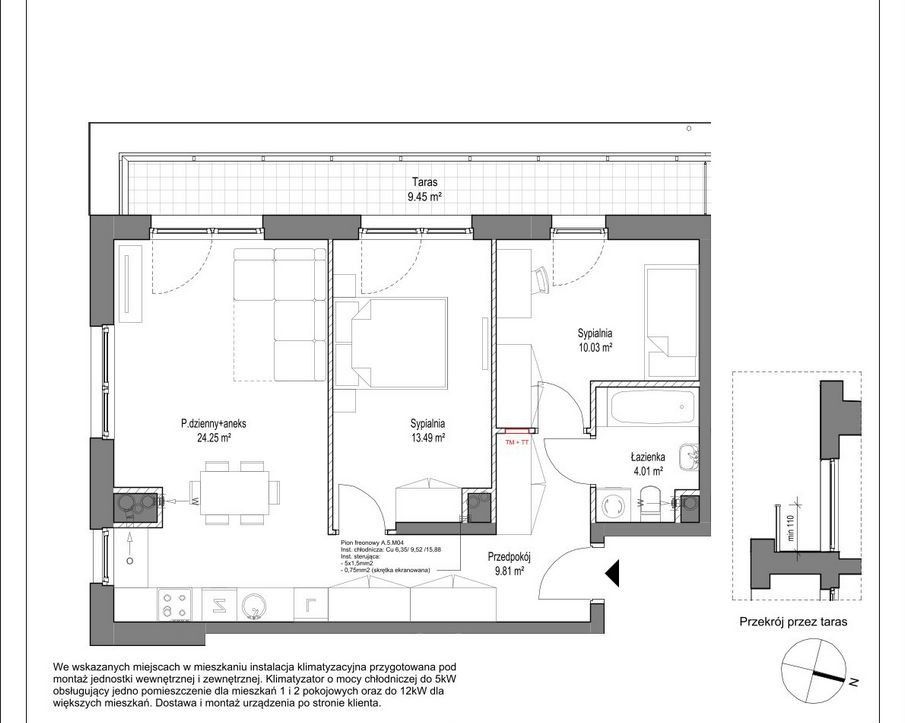 Przestronne mieszkanie z tarasem o pow. 9,45 m2