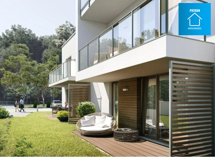 Życie latem toczy się na balkonie o powierzchni 9,65 m2 oraz na zewnątrz obiektu.
